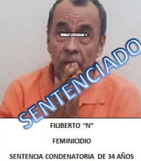 la Fiscalía Regional de la zona norte-Tuxpan obtuvo del Juez de Enjuiciamiento una sentencia condenatoria de 34 años de prisión, en contra del autor de la privación de la vida de una mujer ocurrida en el mes de julio de 2016.