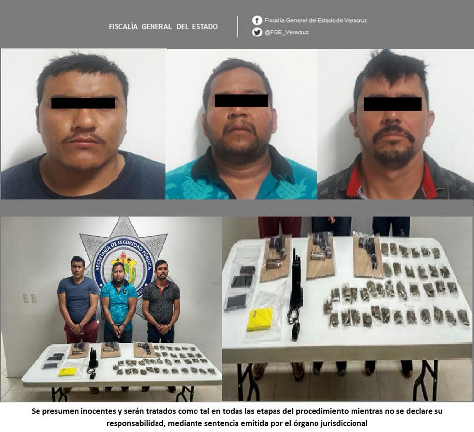La detención de Víctor “N”, David “N” y Héctor “N” tuvo lugar el pasado 15 de marzo del año en curso en la calle Pino Suarez de la colonia Centro del municipio de Tamiahua, cuando agentes preventivos de la Secretaría de Seguridad Pública (SSP) se encontraban realizando un recorrido de vigilancia y sorprendieron a los hoy detenidos en posesión de diversas bolsas de plástico que contenían hierba seca con características de Marihuana.