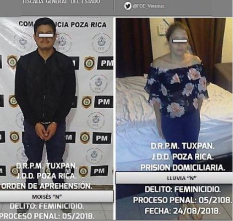 Una vez que la Fiscalía Regional de la zona norte-Tuxpan estableció la identidad y ubicación del segundo probable feminicida, en cumplimiento a una orden de aprehensión, se ejecutó la misma en el estado de Tlaxcala donde se encontraba el imputado Moisés “N”, con respeto a sus Derechos Humanos y Debido Proceso, quien al vencimiento del Término Constitucional se vinculó a proceso.