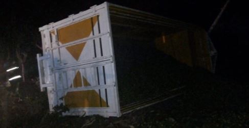 La noche de ayer se registró una volcadura sobre la carretera a Gildardo Muñoz – Papantla de un camión tipo Torton, que venía cargado con 12 toneladas de naranja y donde se transportan diez cortadores de naranja.